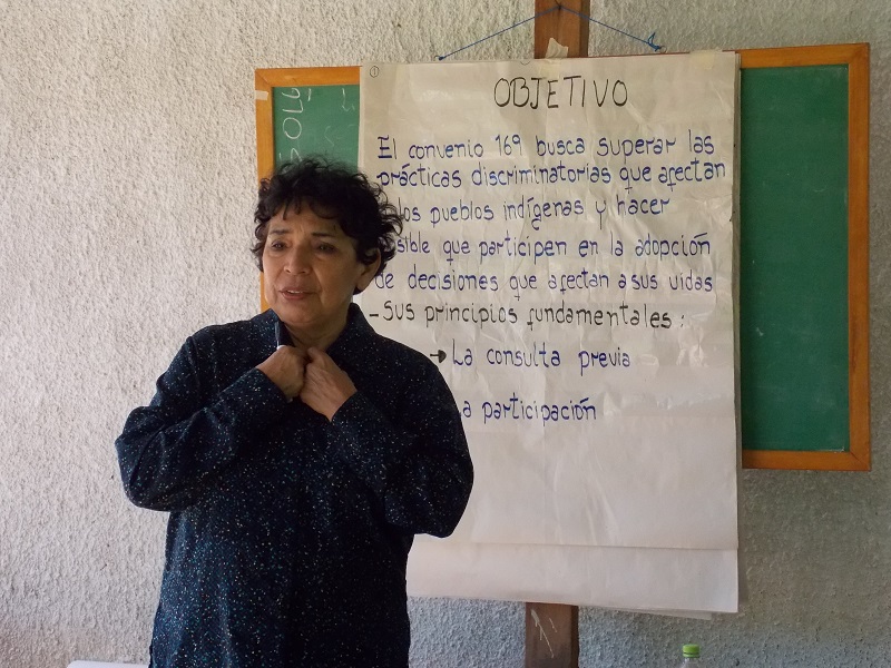 Miriam Suárez, directora de la Casa de la Mujer fue la encargada de hacer los talleres introductorios. Los temas abordados fueron: el Convenio 169 de la OIT, Organización Internacional del Trabajo; cuyo objetivo es superar las prácticas discriminatorias que afectan a los pueblos indígenas y hacer posible que participen en la adopción de decisiones que afectan a sus vidas.